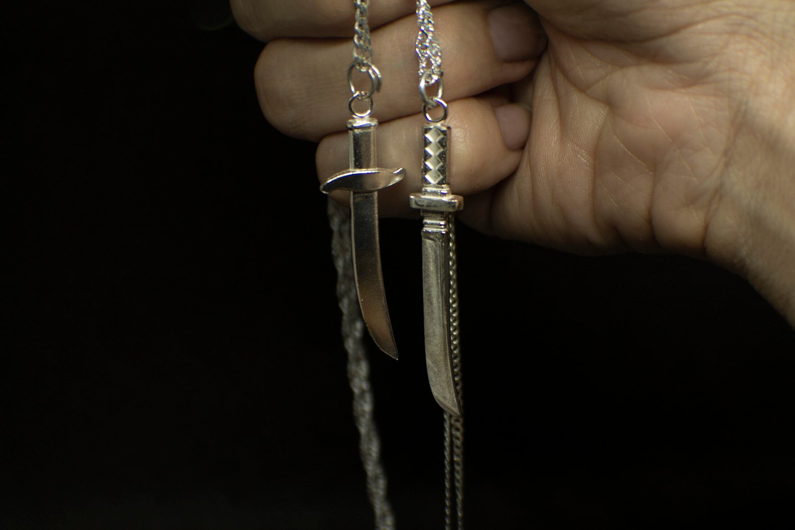 Actuá con claridad. Este dije katana en plata 950 te acompaña cuando necesitás decidir sin dudar. Lo usás y tu presencia se siente más enfocada, más directa, más segura de lo que quiere cortar y lo que decide mantener.