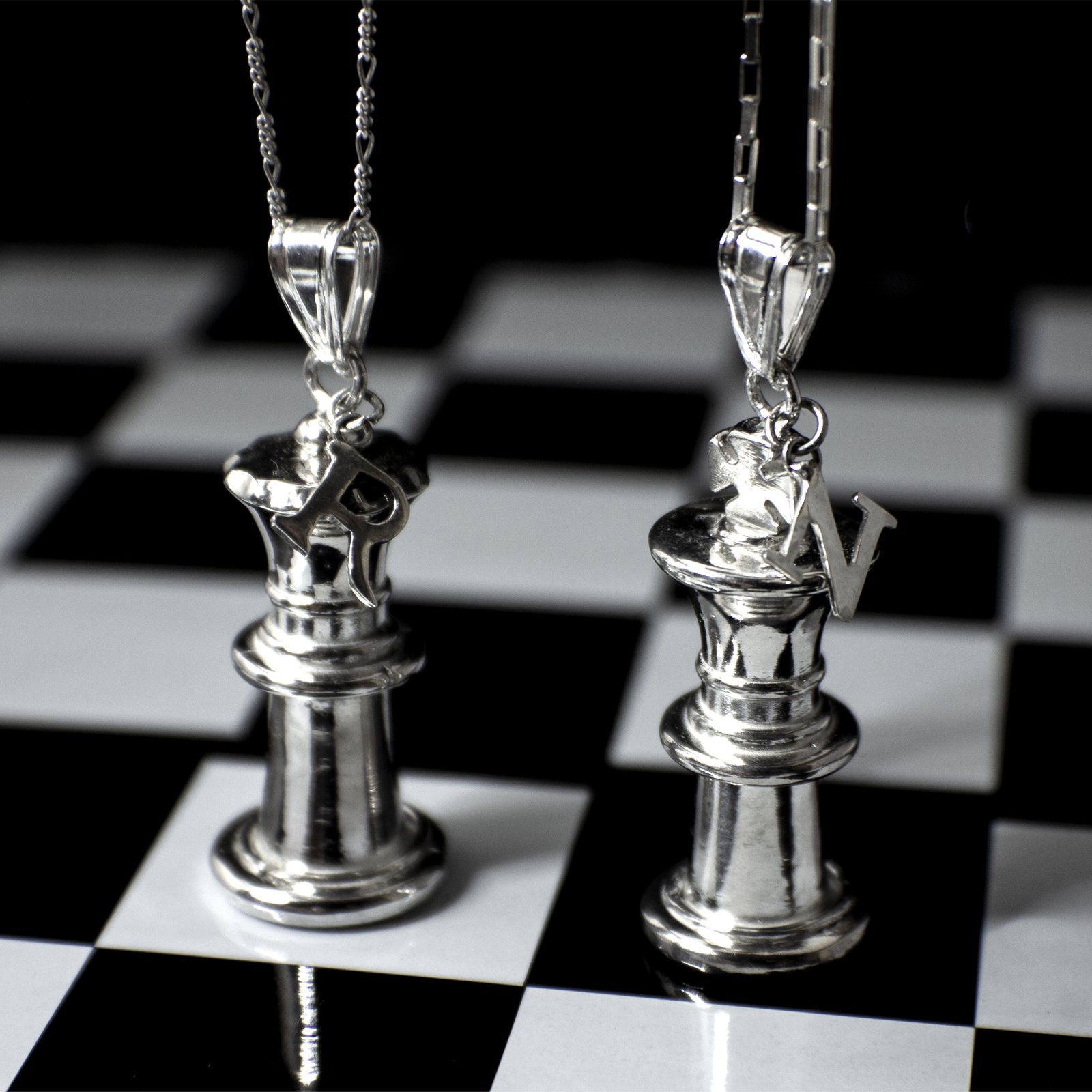 Dijes del rey y la reina de ajedrez en playa 950. Cadenas se venden por separado.