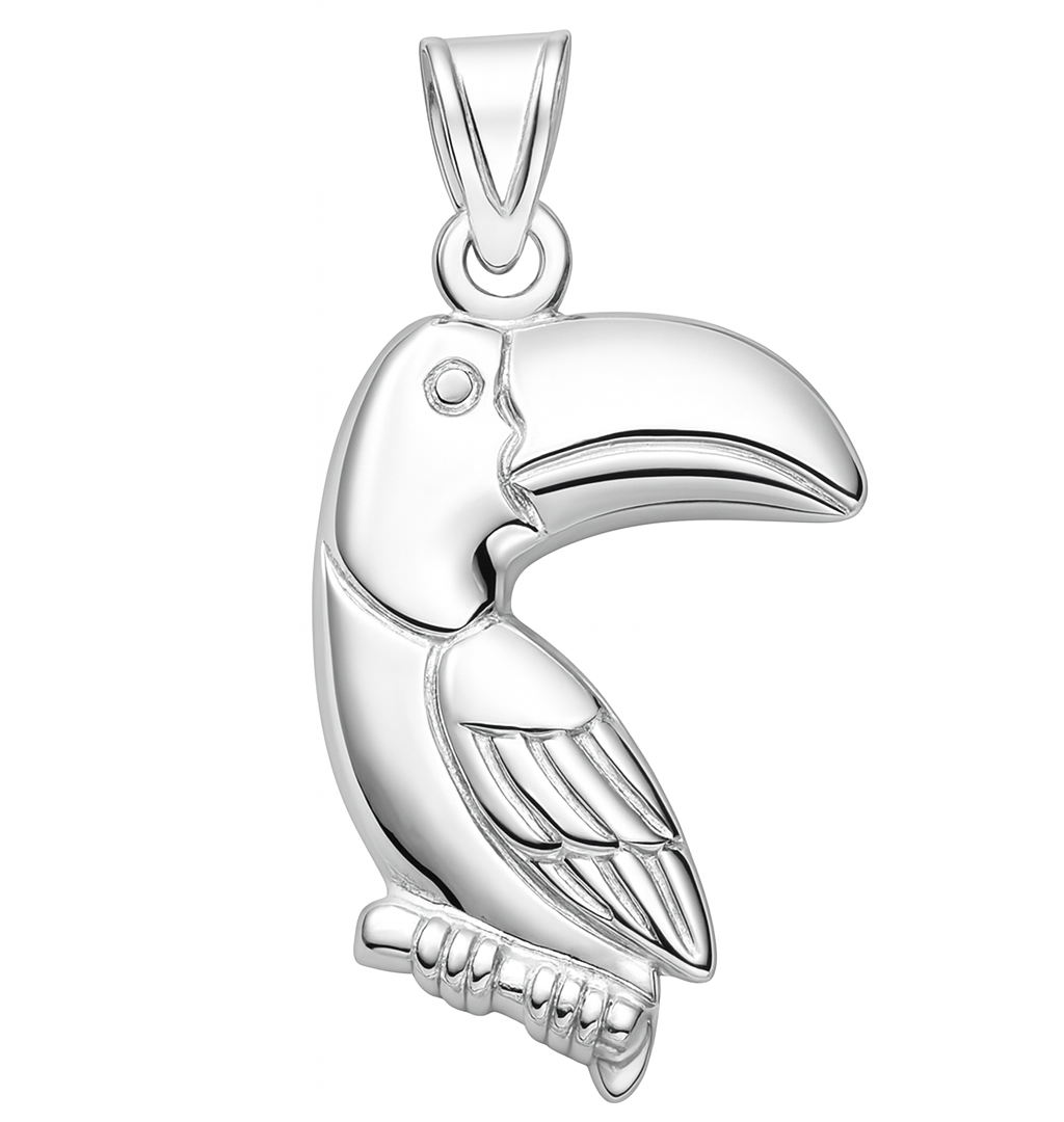 Dije tucán en plata inspirado en una de las aves más emblemáticas de los bosques tropicales.